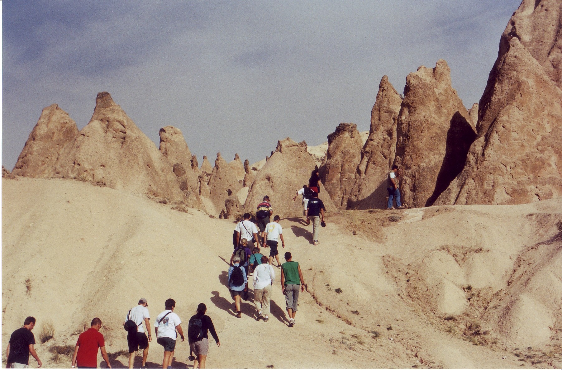 Hiking up to the hollow “rocks” known as the Fairy Chimneys. Cappadocia, Turkey