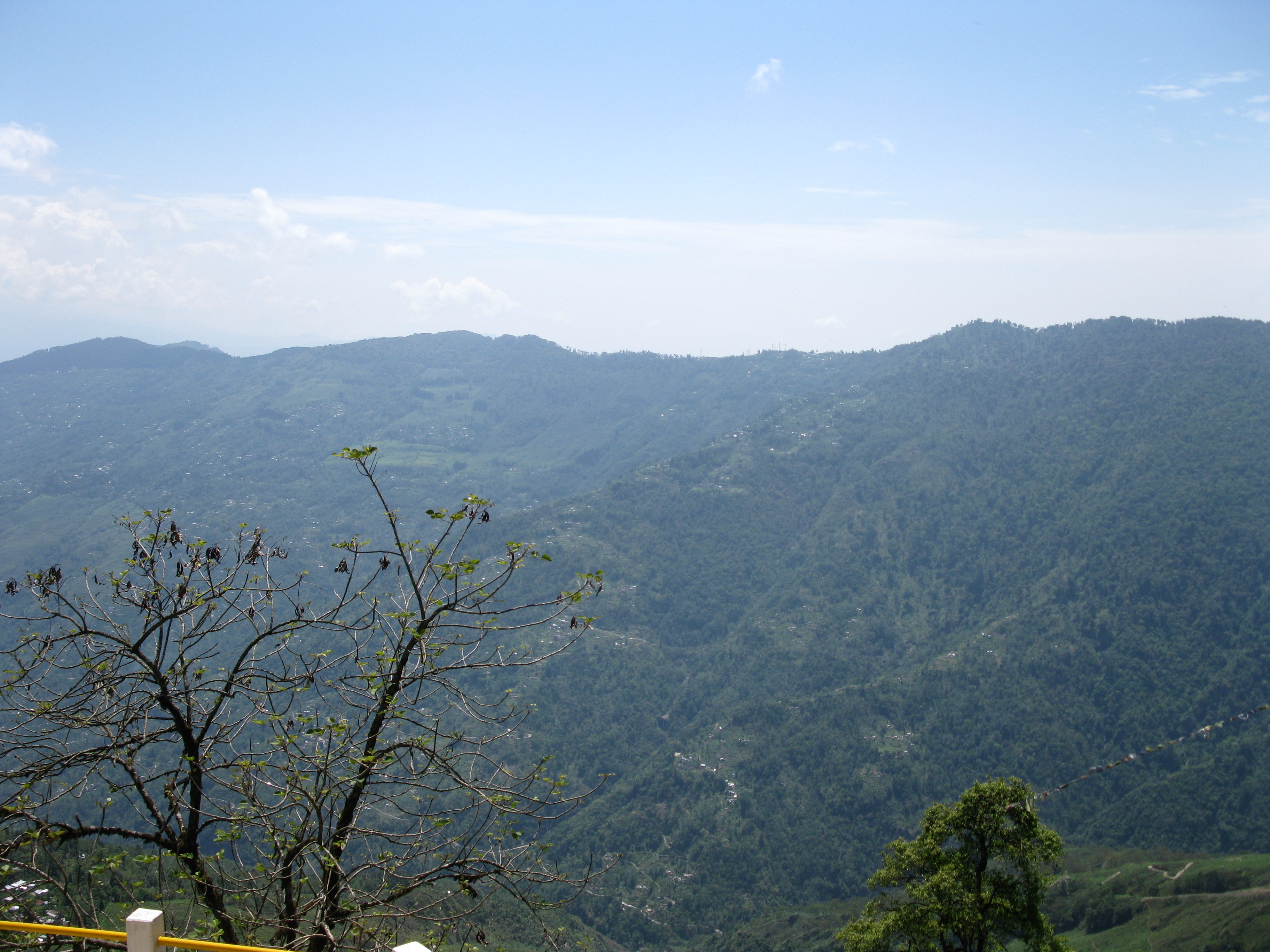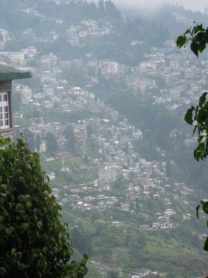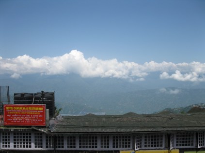 The hotel is pretty simple, no running water so everything is done by bucket. This morning when I woke up the owner already had water boiling on the stove so I was able to take a hot bucket shower. It sounds primitive but when you’re washing the pollution and a day’s worth of gross travel out of your hair, it’s absolute bliss. It’s not just the hotel that does this, it seems to be much of Darjeeling. Walked to the outer deck to see the view, breathtaking with the mountains all around, flags flying everywhere in the city.