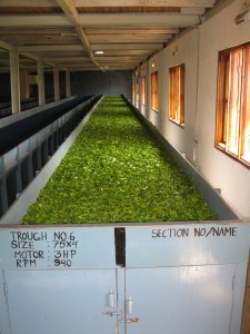 Tea leaves lie above fans that dry them for use. You can’t see or hear the fans but put your hand over the leaves and they’ll shoot up all around.