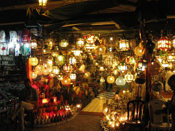 Lantern shop at night in the Djema el-Fna, Marrakech