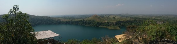 View of a crater lake from the pool deck